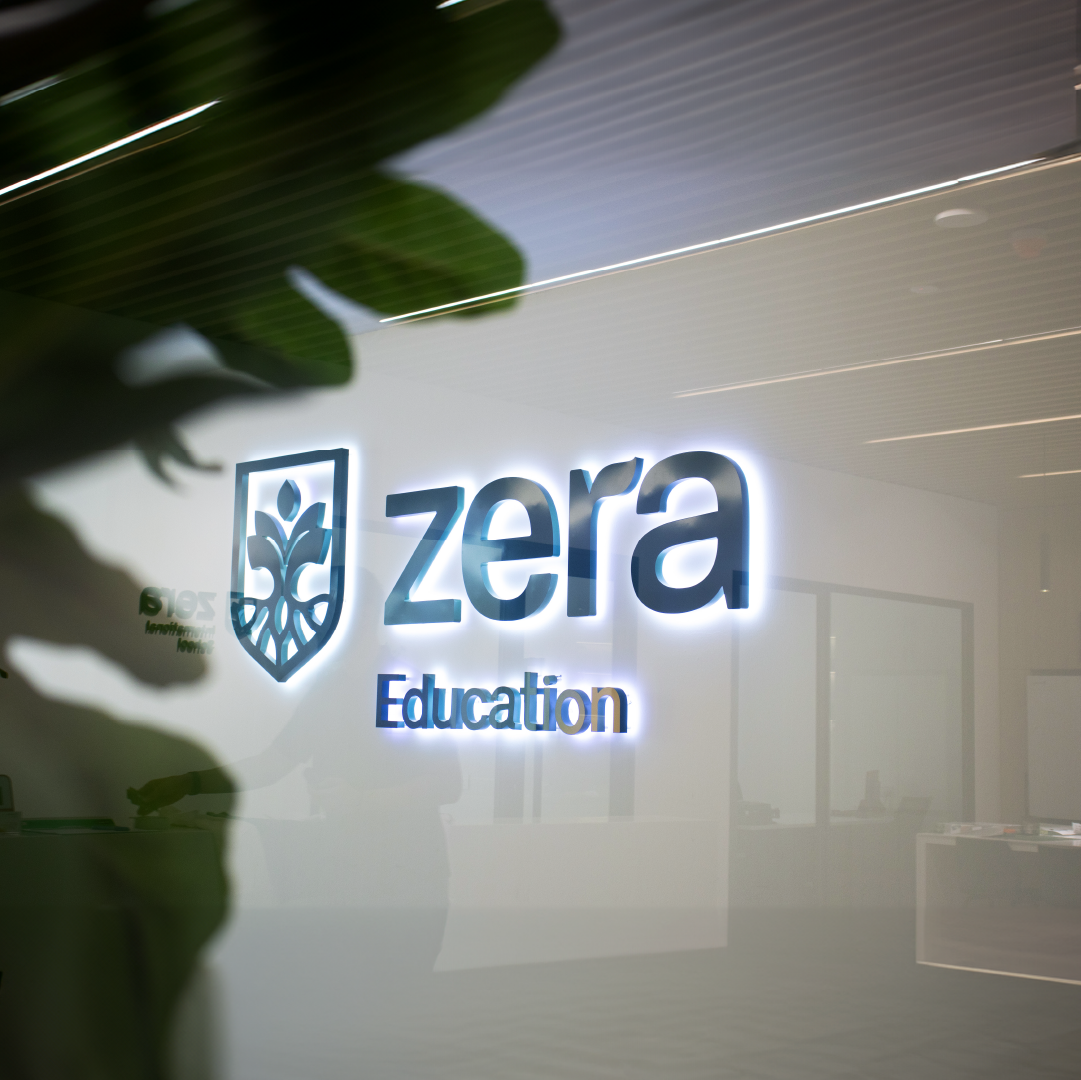 Zera Education’s branding reflects its mission to nurture students’ character and inspire future leaders. The emblem, featuring a shield with a root and sprout, symbolizes growth, protection, and empowerment.