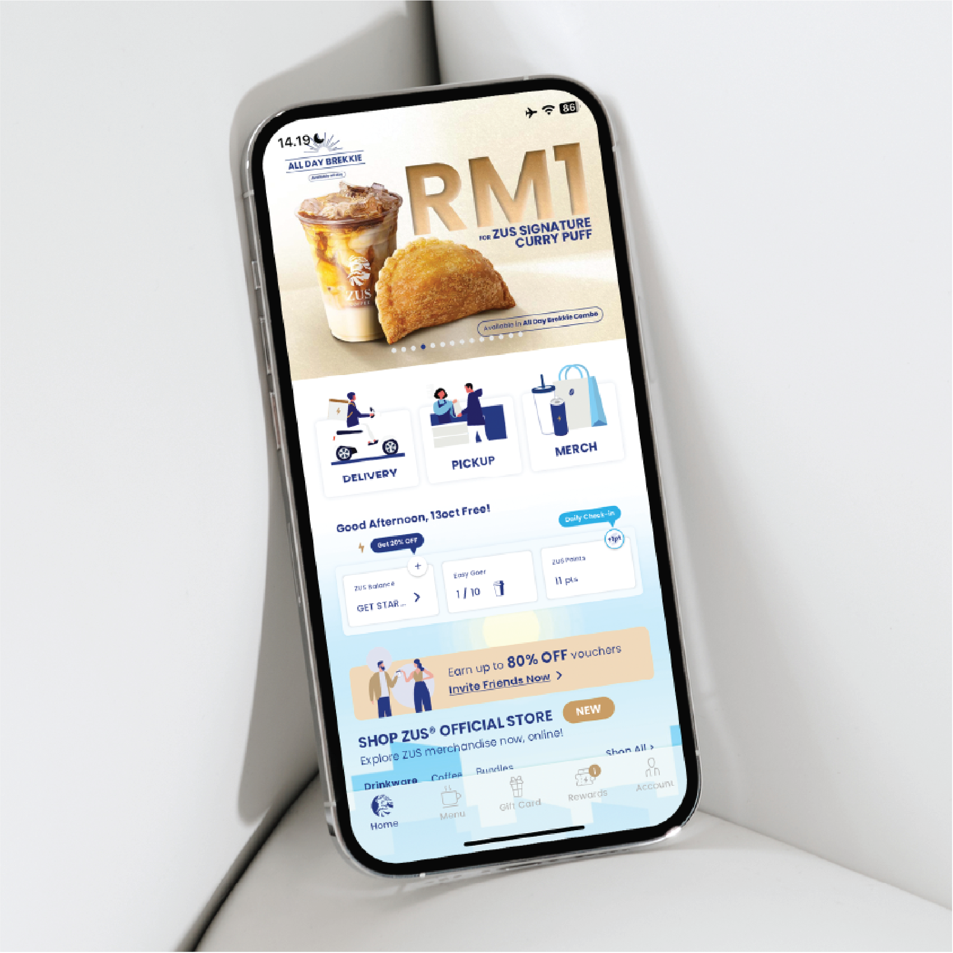 As a tech-driven brand, ZUS Coffee has quickly become one of Malaysia’s fastest-growing coffee companies. Pineapple Studio also contributed to the development of ZUS’s website and mobile app UI, ensuring an intuitive and visually engaging experience.